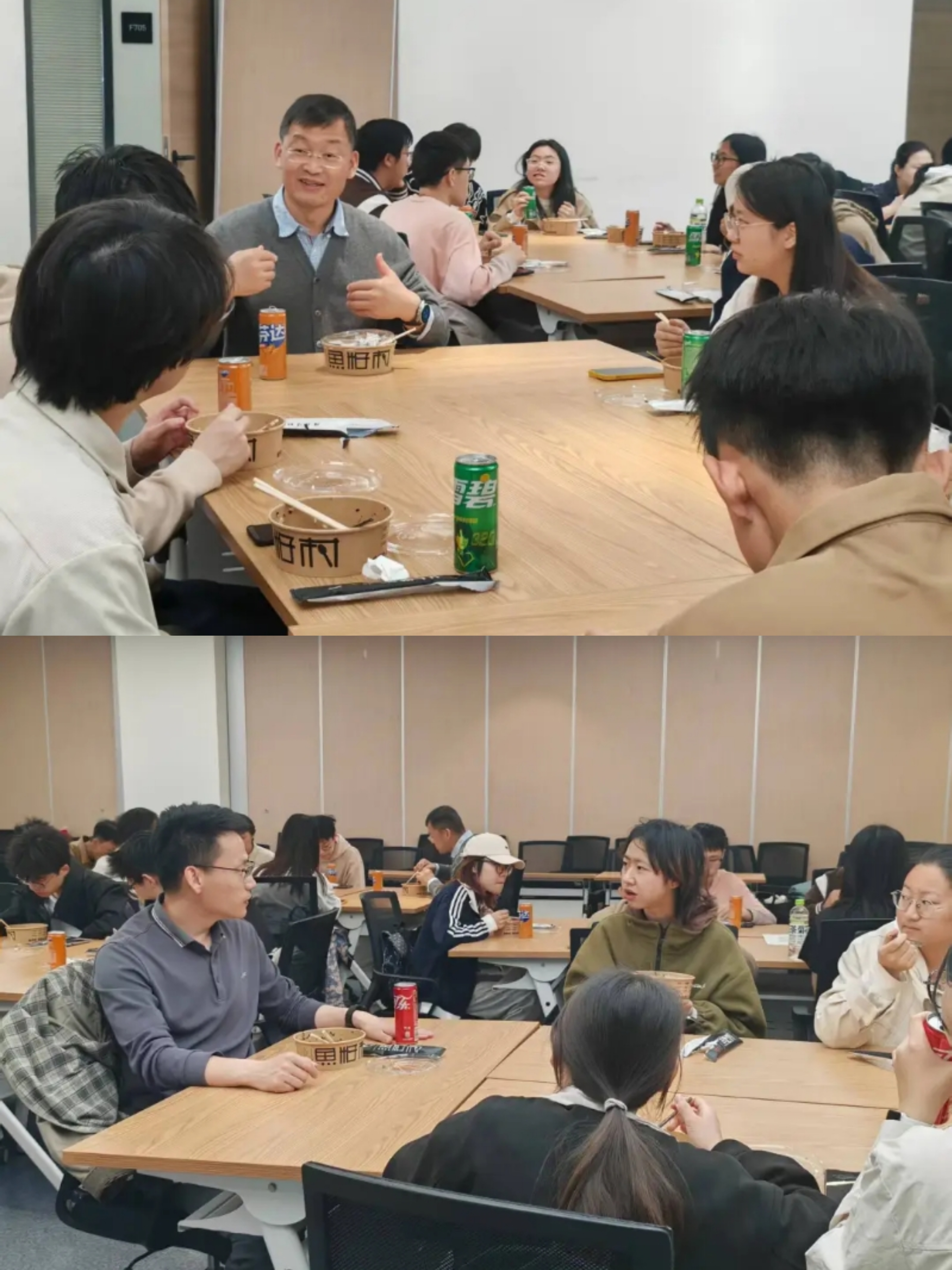 午餐会上,老师向同学们介绍了学院发展历史、学科专业方向、行业趋势及未来就业前景等,对于同学们提出的关于专业培养方案、科创项目、研究方向等方面的提问进行详细解答。老师们还分享了个人成长经历、科研经历和教学心得,让同学们受益匪浅。现场氛围融洽,师生畅所欲言,同学们在轻松愉快的环境中加深了对学院的了解。