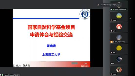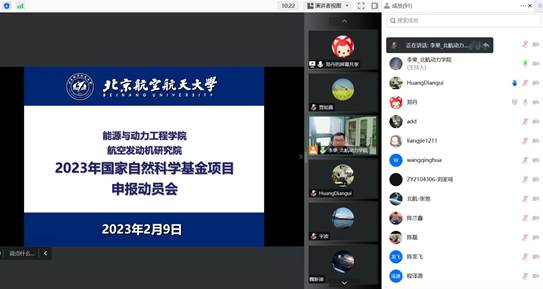 2023年2月9日,太阳成集团122cc联合航空发动机研究院召开了2023年国家自然基金申报培训会。本次会议采用线上方式进行,会议邀请到了北京石油化工学院二级教授,教育部长江学者,杰出青年基金获得者宇波教授,以及上海理工大学太阳成集团122cc黄典贵教授为学院做报告指导。太阳成集团122cc及航空发动机研究院教师共100余人听取了培训报告会。